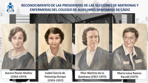 En el histórico Acto de reconocimiento, los retratos de Aurora Pabón Muñoz (1952-1977), Presidenta del Colegio de Auxiliares Sanitarios, sección Matronas, el de Isabel García de Polavieja Derqui (1955-1957), Pilar Warleta de la Quintana (1957-1977) y el de María Luisa Ramos Parodi (1977), Presidentas del Colegio de Auxiliares Sanitarios, sección Enfermeras, fueron descubiertos por sus familiares respectivos y autoridades que presidían la mesa (Presidente del Colegio de Enfermería de Cádiz, Delegada de Igualdad de Diputación, Delegado de Sanidad y Vicepresidenta del Colegio).