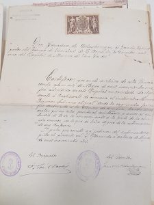 El 14 de mayo de 1903, nuevamente entrega instancia para poder examinarse del segundo Curso de la carrera de Practicante. Cumpliendo uno de los requisitos obligatorios, aporta certificado de prácticas llevadas a cabo como anteriormente referíamos, en el Hospital Provincial. Dicho certificado venía firmado por los doctores D. Enrique Alcina Quesada[6] y D. Juan Gilabert, en el mismo se ratificaba que: