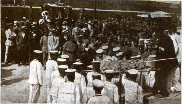 Por orden del Alférez de Navío, dejó al cañonero “Concha”, siendo recogido por el buque “Lauria”.